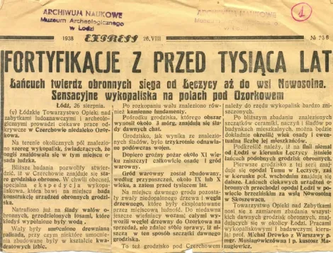 86 lat temu, 26 sierpnia 1938 roku w łódzkim Expressie nr 236 ukazał się artykuł zatytułowany "Fortyfikacje z przed tysiąca lat. Łańcuch twierdz obronnych sięga od Łęczycy aż do wsi Nowosolna. Sensacyjne wykopaliska na polu pod Ozorkowem", w którym znalazł się między innymi opis grodziska w Czerchowie (powiat Zgierz), objętego wówczas po raz pierwszy badaniami archeologicznymi.