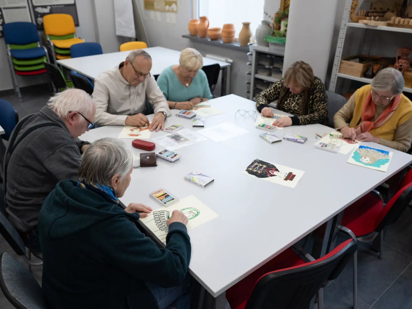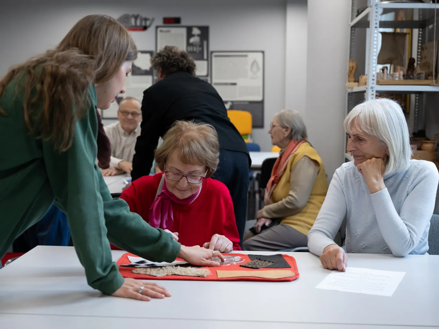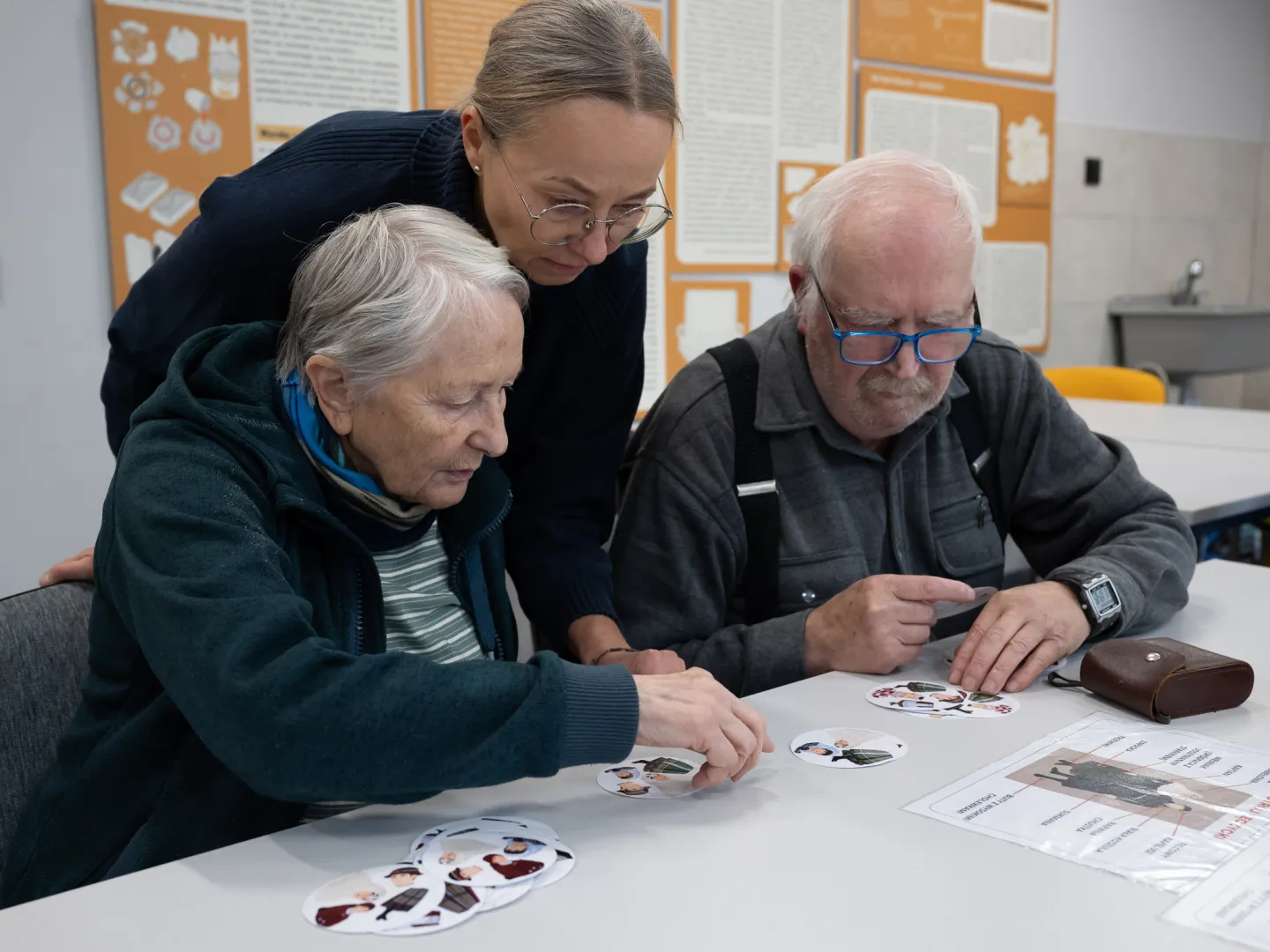 Za nami kolejne zajęcia z projektu "Muzeoterapia wsparciem dla osób z chorobami otępiennymi" dla seniorów ze Stowarzyszenia Kamienica 56 oraz Łódzkiego Towarzystwa Alzheimerowskiego. Tym razem rozmawialiśmy o strojach ludowych. Seniorzy wysłuchali krótkiego wykładu na ten temat. Później zagrali w grę dotyczącą stroju łowickiego, łęczyckiego, opoczyńskiego i sieradzkiego. Dotykali także mat obrazujących roślinne i zwierzęce pochodzenie materiałów, z których wykonywano odzież. Najwięcej pozytywnych emocji wzbudziły łowickie hafty.