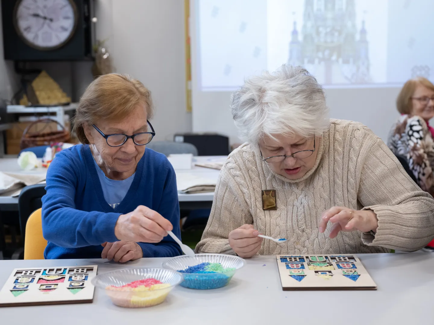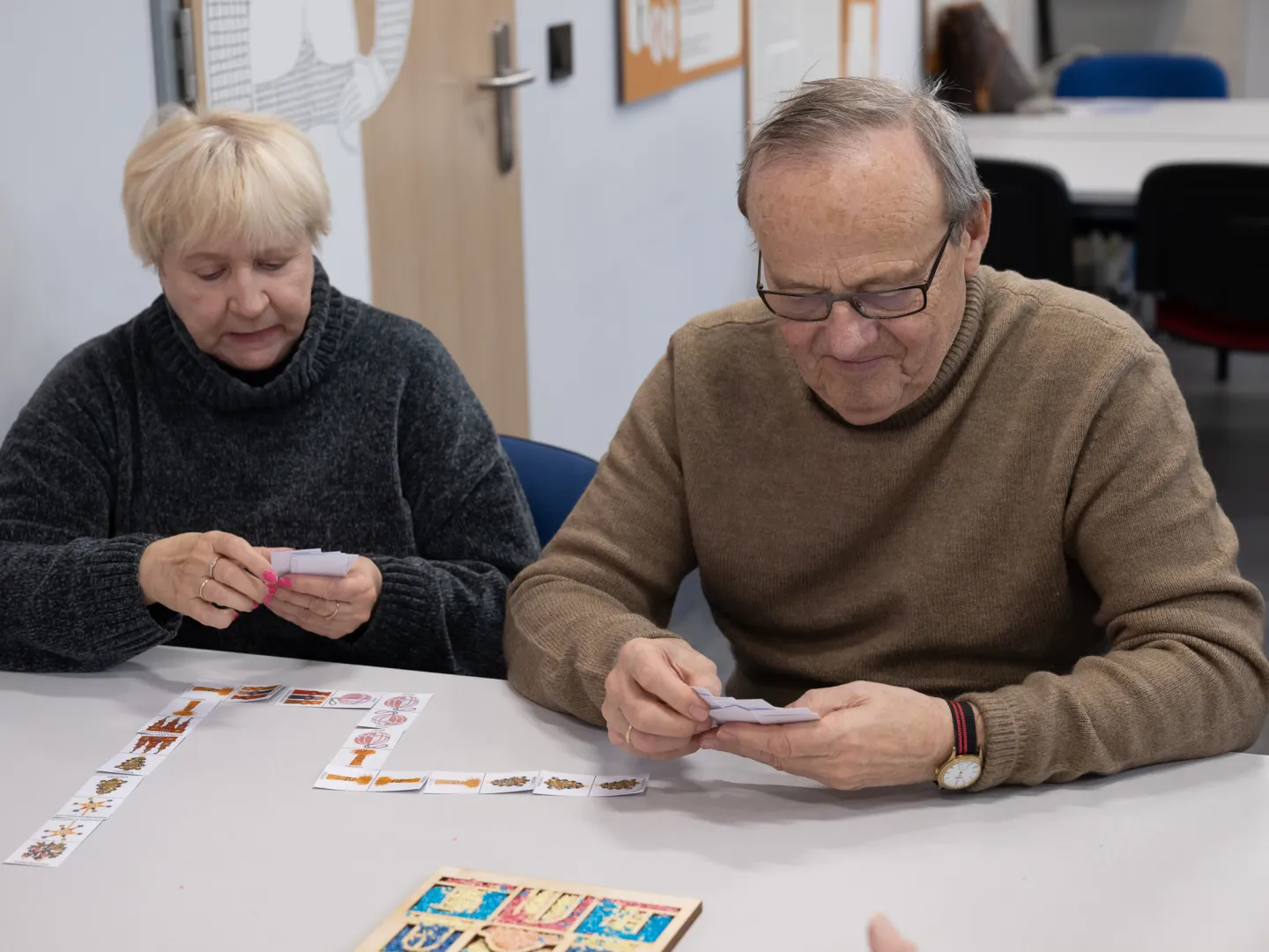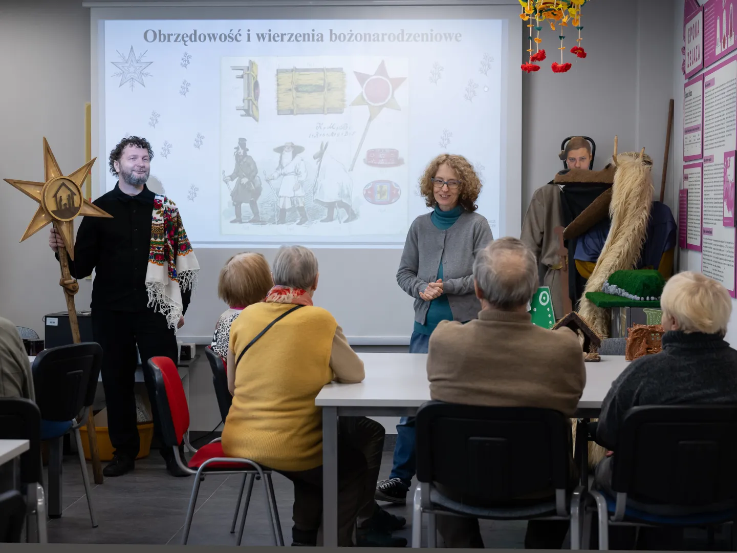 Za nami ostatnie warsztaty dla seniorów ze Stowarzyszenia Kamienica 56 oraz Łódzkiego Towarzystwa Alzheimerowskiego. Jak na grudzień przystało, mówiliśmy o świątecznych zwyczajach - o podłaźniczce, diduchu, pająkach, zapachach świąt i o choince pełnej tradycyjnie robionych ozdób. Było nawet świąteczne domino. Królowała jednak szopka krakowska - jako wysypywanka sensoryczna i kolorowanka.