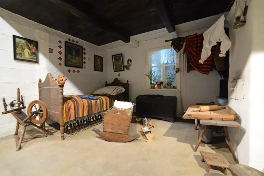"Wizerunkiem" dzieciństwa jest wnętrze izby, a więc najważniejszej części domu rodzinnego, od której dziecko zaczynało poznawanie świata i gdzie czuło się najbezpieczniej. Tu dzieci naśladujące dorosłych, wdrażane do najrozmaitszych zajęć, uczyły się wytrwałości, poczucia obowiązku i szacunku dla pracy. W izbie-kuchni koncentrowało się życie całej rodziny, a w tradycyjnym wnętrzu obowiązywał pewien ustalony porządek w rozmieszczaniu mebli, sprzętów, przedmiotów kultu religijnego i elementów zdobniczych.