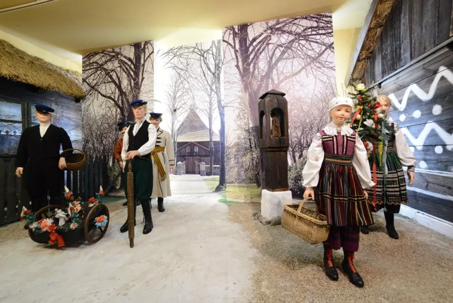Na wystawie grupy zeprezentowane są w scenerii drogi wiejskiej w Rawskiem, gdzie jeszcze przed II wojną światową od Poniedziałku Wielkanocnego przez cały poświąteczny tydzień, chodzono z żywym kogutem.