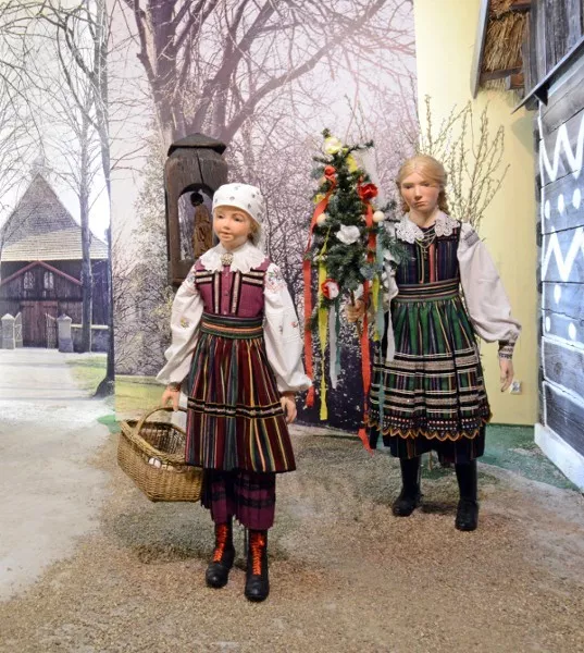 Okres młodzieńczy upływał na wsi pod znakiem doskonalenia się w pracach gospodarczych i wzmożonego uczestnictwa w życiu towarzyskim. "Wizerunkiem" młodości na wystawie są sceny przedstawiające elementy cyklu obrzędowości wiosennej: grupę dziewcząt z "gaikiem" i grupę starszej młodzieży męskiej, tzw. "koguciarzy" z wózkiem dyngusowym, na którym znajdował się kogut. "Gaik" - zielone drzewko albo tylko ustrojona gałąź, był symbolem wiosny, kogut - symbolem sił witalnych i płodności. Każda z grup chodząc od domu do domu składała życzenia, śpiewała okolicznościowe pieśni, a "koguciarze" ponadto wygłaszali oracje, płatali różne figle, a na końcu oblewali dziewczęta wodą. W zamian za dobre życzenia wszyscy otrzymywali tzw. suchy dyngus w postaci wiktuałów i datków pieniężnych.