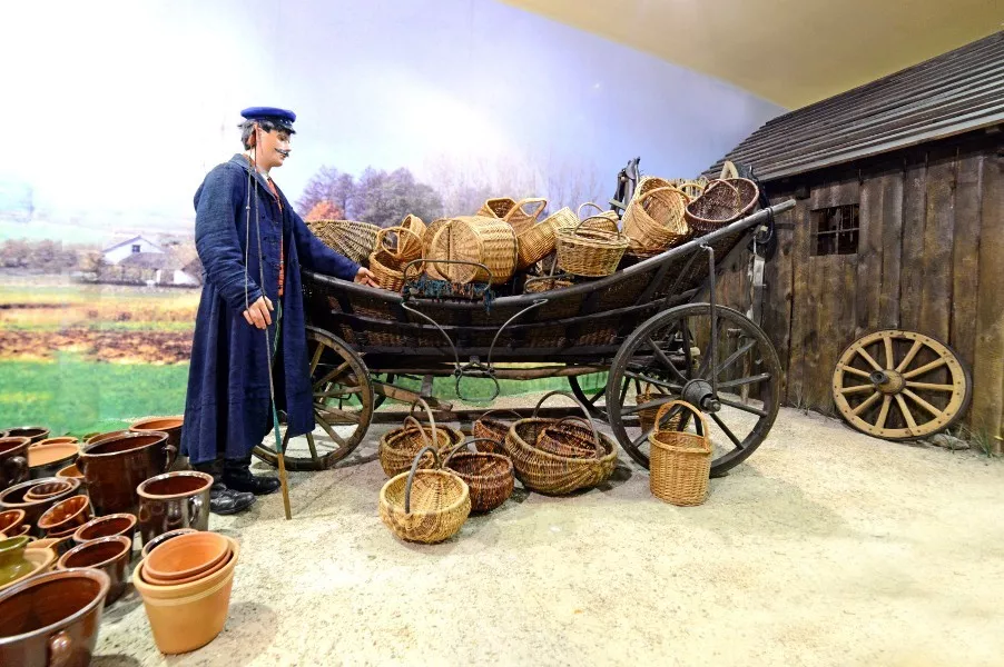 Stała wystawa etnograficzna pt. Szare jak ziemia, barwne jak pamięć poświęcona jest człowiekowi - twórcy, a zarazem "wytworowi" kultury wsi okresu dwudziestolecia międzywojennego, na terenie Polski środkowej (na wystawie reprezentowane są regiony: opoczyński, rawski, łowicki i sieradzki). W owym czasie wieś pozostawała jeszcze w pewnej izolacji od świata zewnętrznego, co sprzyjało utrzymywaniu się postaw zachowawczych, a wraz z nimi systemu społeczno-kulturowego, który opierał się na wartościach związanych z ziemią, lokalnością, kultywowaniem miejscowej tradycji, działaniem kontroli społecznej i na autorytecie starszych. Dlatego też mimo indywidualizacji losów jednostek, istniał na wsi pewien schemat kulturowy ludzkiej drogi życiowej. Koleje życia człowieka stanowią główny wątek narracyjny prezentowanej wystawy, a poszczególne jej części są "wizerunkami" następujących po sobie etapów biografii chłopskiej.